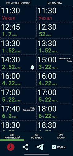 * Echtzeit-Fahrpläne für die Linien 327 (Irtishskiy - Omsk - Irtishskiy), 323 (Rozovka - Omsk - Rozovka) und 905 (Achair - Omsk - Achair).