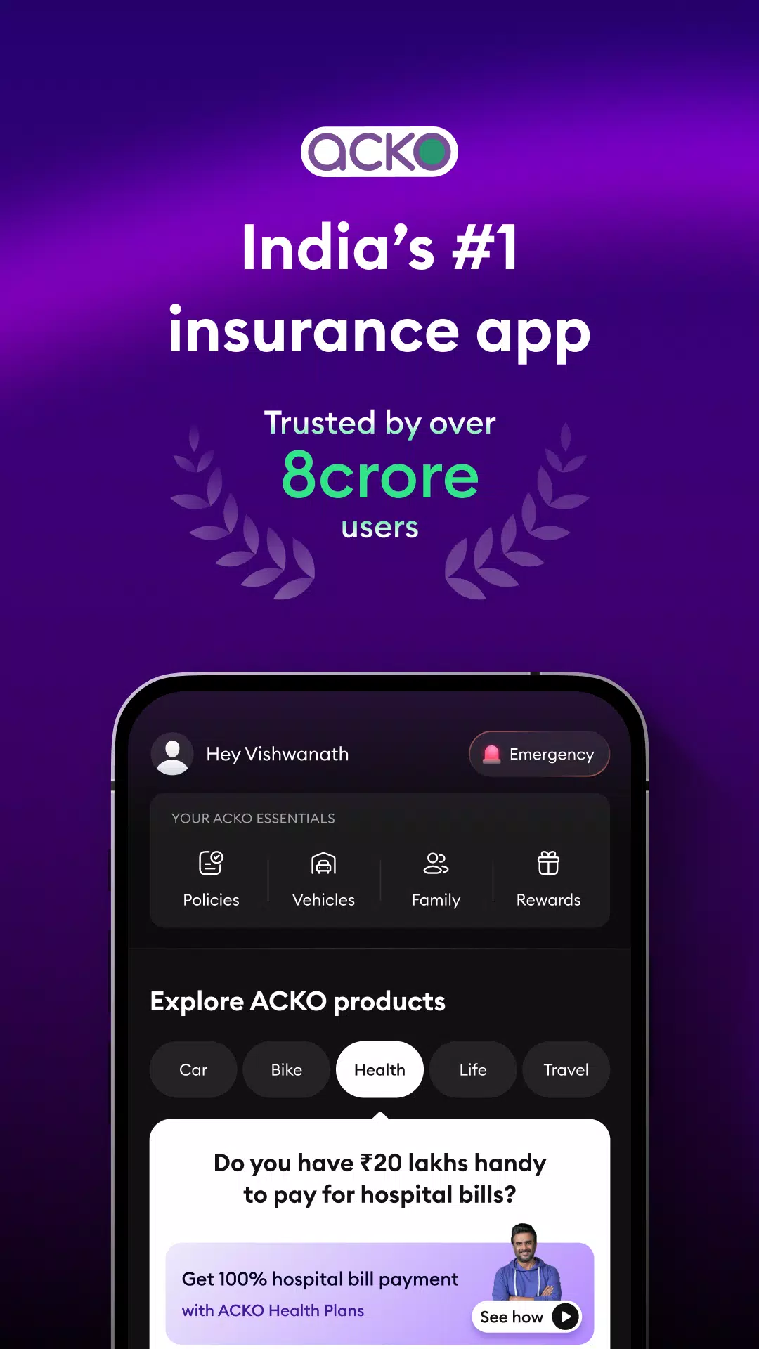 Nicht-versicherungsbezogene Dienstleistungen werden von ACKO Tech bereitgestellt und sind von den Produkten der ACKO General Insurance getrennt. Details: https://www.acko.com/terms-and-conditions/app-store-terms/