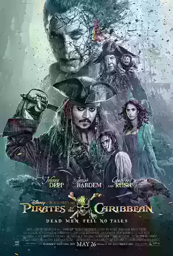 La última entrega reúne a Jack y Barbossa con Henry Turner (Brenton Thwaites), el hijo adulto de Elizabeth y Will, y presenta al vengativo Armando Salazar (Javier Bardem). Orlando Bloom y Keira Knightley regresan brevemente como Will y Elizabeth.