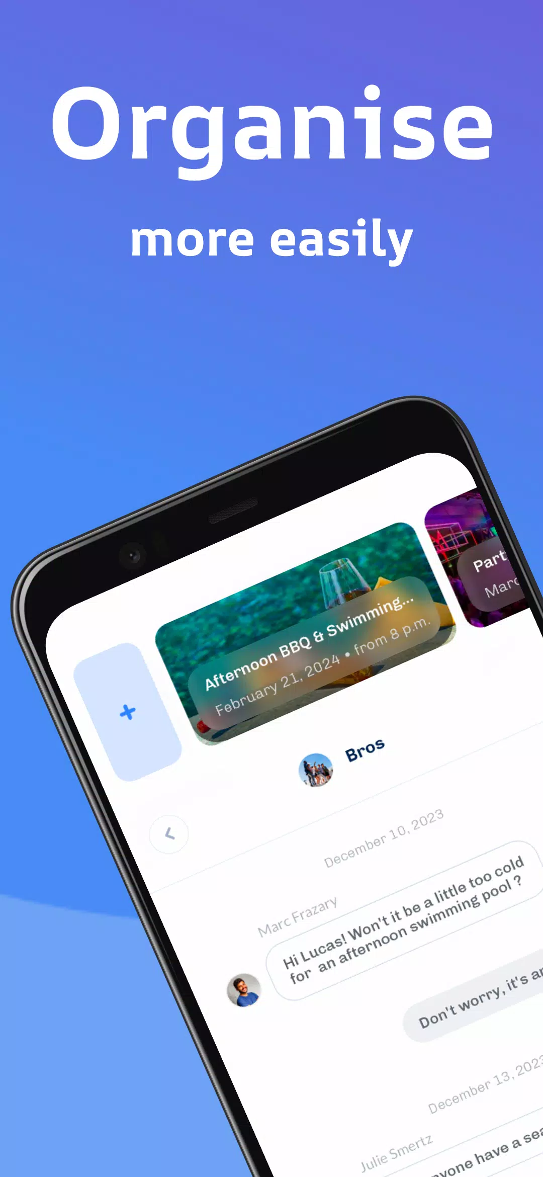 • Organisez, partagez et rejoignez sans effort des événements privés et publics avec votre réseau !