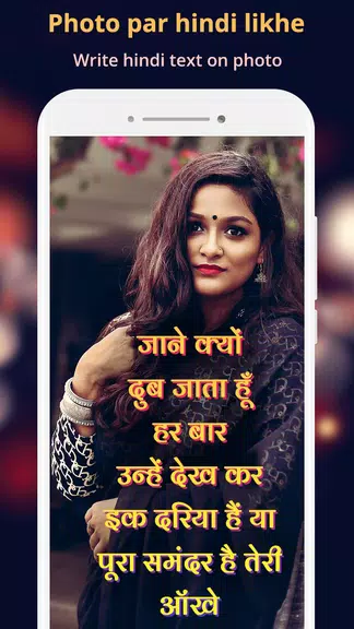 Libérez votre créativité avec Hindi Text On Photo – une application intuitive conçue pour ajouter facilement de la poésie hindi, des ghazals, des citations motivantes (suvichar) et bien plus encore à vos photos. Idéal pour créer des shayari d'amour, des messages édifiants ou des vœux festifs. Explorez diverses catégories comme l'amitié, l'attitude et les citations romantiques pour personnaliser vos photos. Partagez vos expressions artistiques sur les plateformes sociales ou envoyez des messages émotionnels à vos proches. Transformez des images quotidiennes en histoires visuelles captivantes en quelques tapotements avec Hindi Text On Photo.