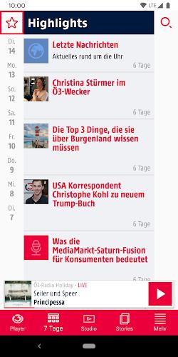 Hitradio Ö3 is a must-have app for music enthusiasts. Stream Hitradio Ö3 live on your smartphone, enjoy recent shows from the past week, and explore highlights like special guest appearances and comedy sketches. Navigate effortlessly with the 7-day replay feature, search for your favorite segments, and dive into Ö3 podcasts on demand. Watch the live studio cam, bookmark your top songs and shows, and stay informed with real-time traffic alerts. Engage directly by sending messages and media to the studio, enable push notifications for breaking news and weather, and wake up to your favorite station with the built-in radio alarm and sleep timer. Hitradio Ö3 keeps you connected to everything Ö3 has to offer.