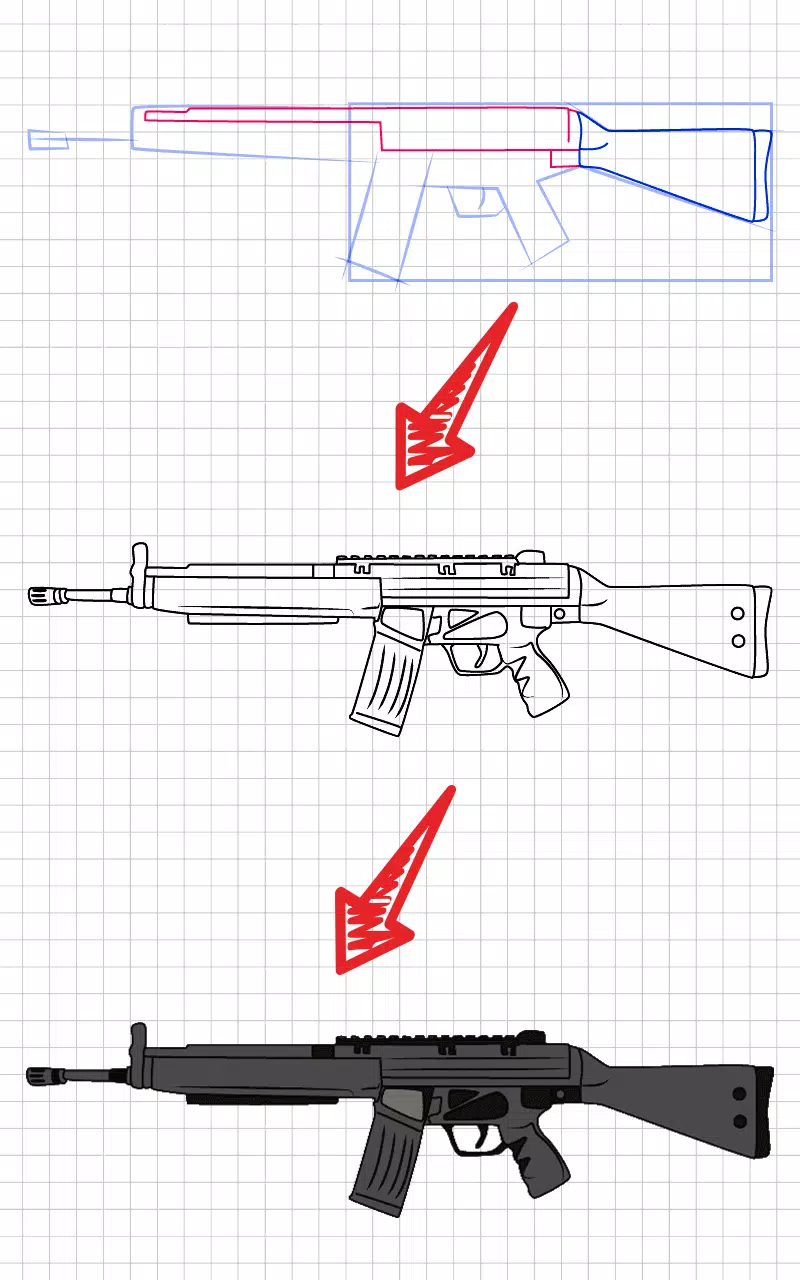 Simply grab a pencil and paper, choose a weapon, and follow the clear, step-by-step instructions. It's incredibly user-friendly! Create amazing weapon drawings with the best step-by-step lessons available on Google Play!