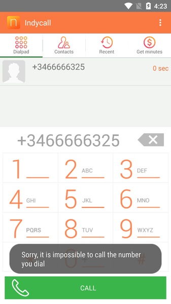 When you make a call with Indycall, it's important to enter the country code +91 before the rest of the number. In any case, if you have the number saved to your contacts, it will take less time to call the person you want.