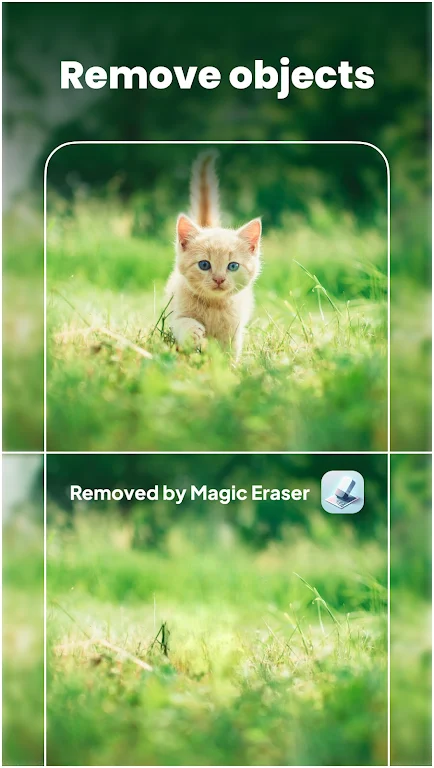 Image quality, Magic Eraser has you covered. With its intelligent AI capabilities, you can effortlessly remove unwanted objects and people from your photos, leaving them flawless and professional-looking. The powerful AI photo enhancer automatically corrects and enhances your images, revitalizing colors and details. The background editing features allow you to easily remove backgrounds and replace them with stunning alternatives, creating eye-catching compositions. And with the expand image feature, you can resize your photos without compromising on quality. With a user-friendly interface and both free and full versions available, Magic Eraser is the must-have app for all your photo editing needs. Download now and let the magic begin!