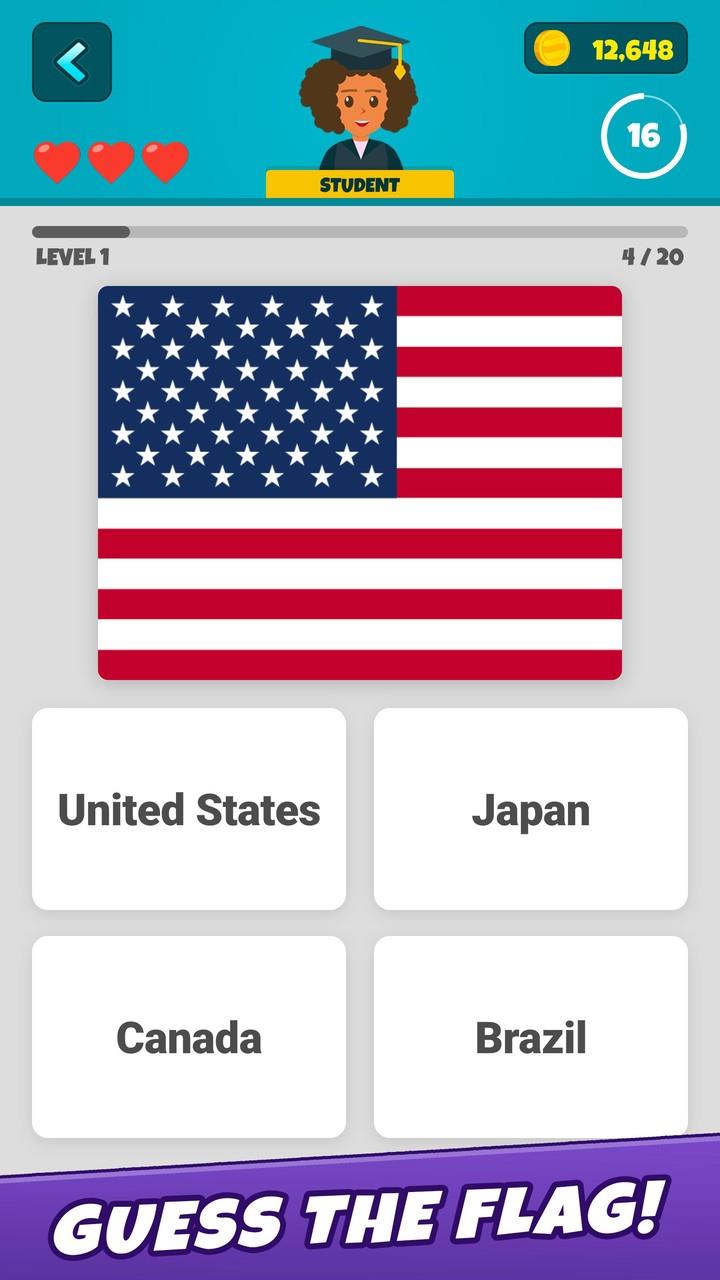 ❤️ Jogo de Quiz de Geografia: Flags of the World 2 é um jogo de trivia divertido e envolvente que ensina sobre bandeiras, capitais, mapas, continentes e moedas de todos os países do mundo.