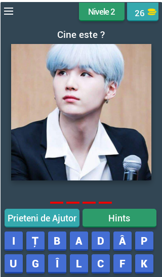 Mergulhe no desafio definitivo para fãs de K-Pop com este emocionante jogo de adivinhar artistas! Aprimore seu conhecimento sobre ídolos amados e sucessos musicais enquanto decifra pistas em vários níveis. Cada fase desbloqueia conhecimentos mais profundos sobre K-Pop e apresenta possíveis novos favoritos. Afie sua expertise e prove que consegue identificar todos – aproveite a aventura!
