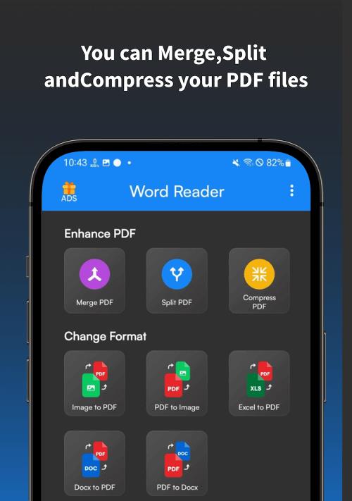 Познакомьтесь с DocxReader Word Office Viewer — универсальным просмотрщиком файлов, поддерживающим различные форматы, такие как docx, doc, xlsx, pptx и txt, а также PDF. Одним нажатием пользователи могут получить доступ к документам Word, хранящимся на их мобильных устройствах, что делает просмотр и обмен проще, чем когда-либо. Высококачественный интерфейс обеспечивает превосходный опыт, позволяя с легкостью читать данные, просматривать фотографии, таблицы и различные стили шрифтов. Уникальная функция "Режим просмотра" предлагает четыре адаптивных варианта для удовлетворения различных потребностей. С упрощенной печатью и обменом пользователи могут печатать документы и отправлять их по электронной почте родным, друзьям и коллегам. DocxReader также поддерживает другие форматы, являясь комплексным решением для управления и просмотра документов. Интуитивный дизайн облегчает просмотр различных файлов, включая электронные таблицы, PDF-файлы, презентации PowerPoint и простые текстовые файлы. Скачайте сейчас это незаменимое приложение!